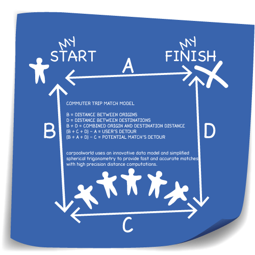 Carpoolworld.com looks at exactly where everyone lives and works to find perfect carpool matches for everyone. Our exclusive TripMatchTM process uses advanced computing technology to make perfect carpool matching easy, fast and precise. Please read on for more carpool information.